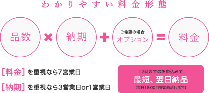 平日12:00までのお申込み完了で翌日18:00までに納品します。